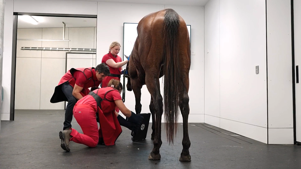Assessments include different gait analysis across different surfaces, including rubber, asphalt, and arena footing to highlight pain in different tissue types. Flexion tests are used to show the full degree of lameness.  , Some lamenesses may only be evident under saddle. For these cases, we encourage clients to bring their tack so we can assess the horse in the conditions where the lameness appears during performance. Diagnostic anaesthesia including nerve and joint blocks, before diagnostic imaging such as radiographs, ultrasound or mri is performed.